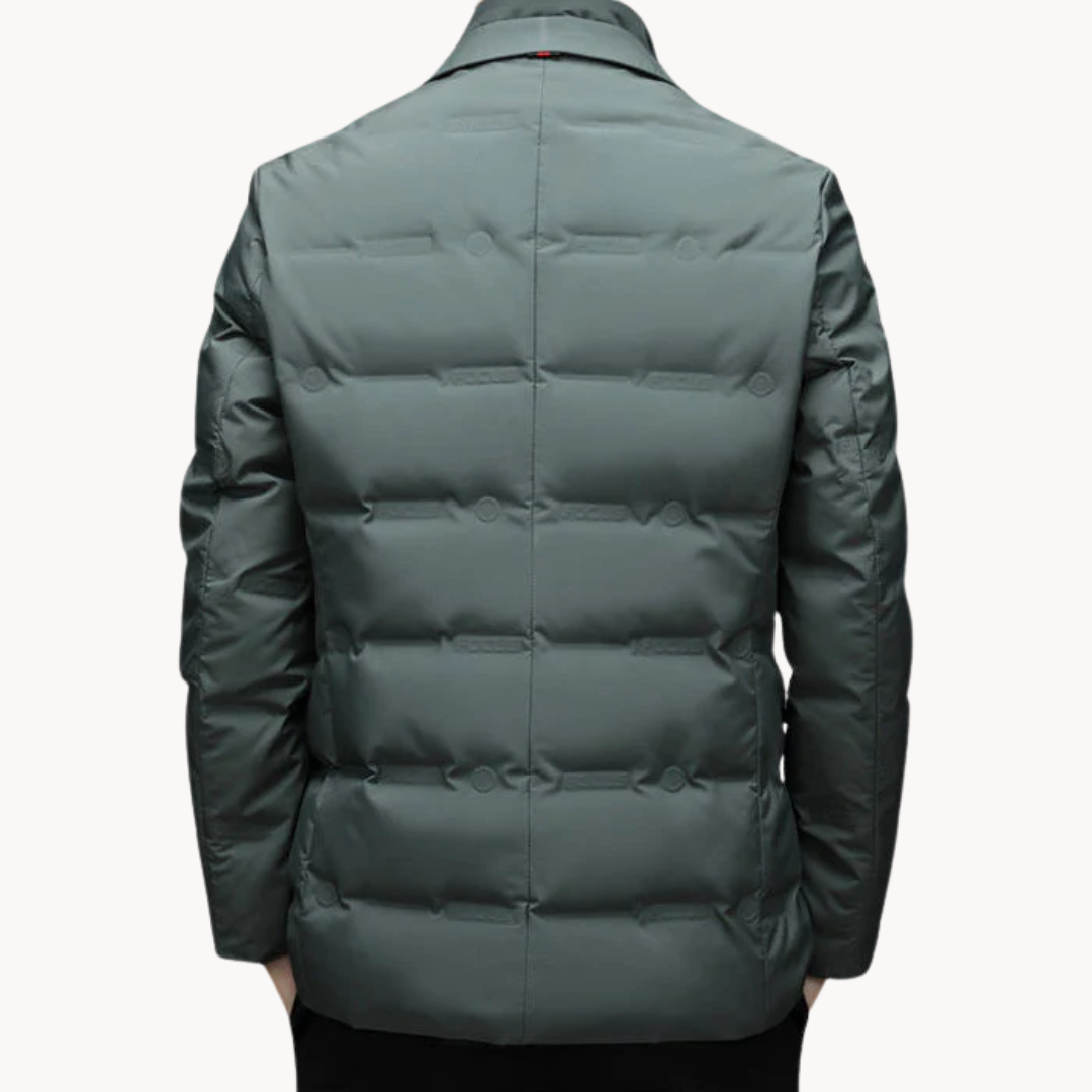 Brave the winter chill in unparalleled style with the George Blazer Jacket. A perfect fusion of warmth, comfort, and sophistication, this blazer jacket effortlessly blends classic tailoring with modern functionality. Filled with plush down insulation, it ensures cozy warmth while the water-resistant finish protects you from the elements. With its elegant notch lapels and sleek silhouette, this jacket is designed to keep you looking sharp and feeling comfortable, whether you're in the office or navigating the city streets.